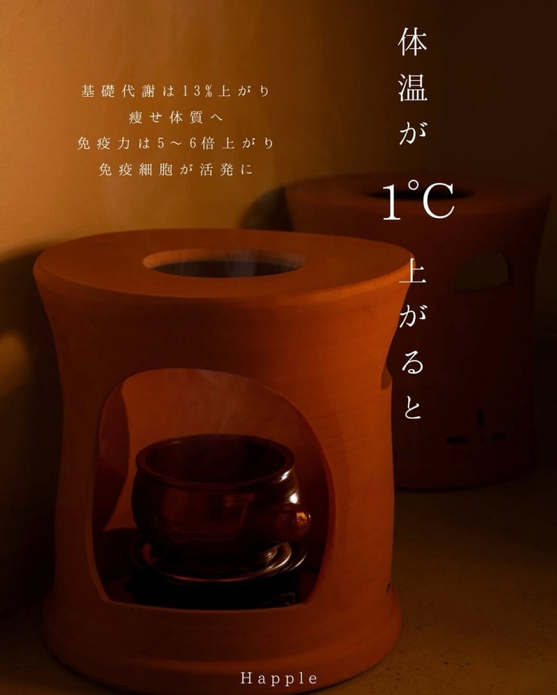 当店では、天然の黄土で作られた専用のイスと壷を使用した、韓方ベースの温活ケアを行います。